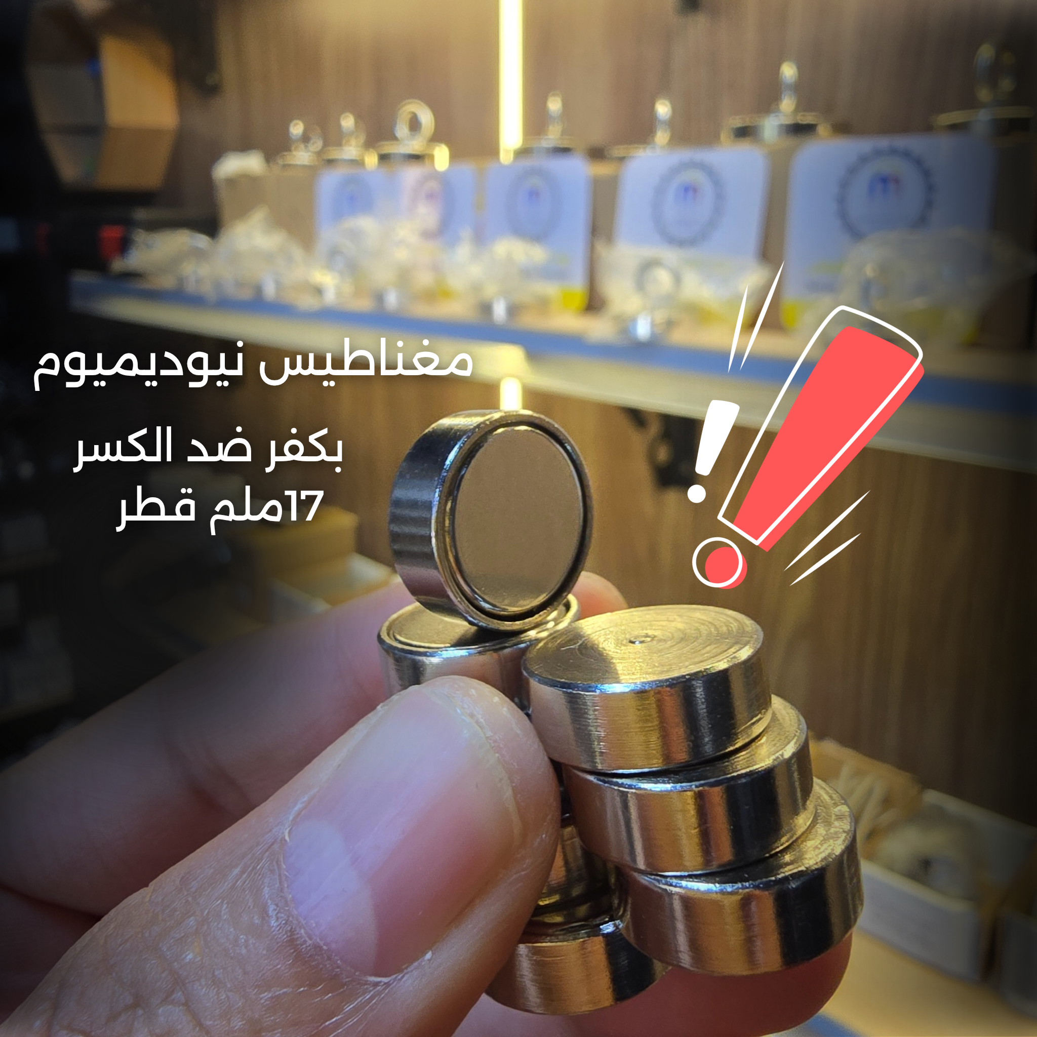 4 قطعة مغناطيس نيوديميوم بكفر ضد الكسر مقاس 17x5mm ملم قوة ن 52 طلاء نيكل – mn0233